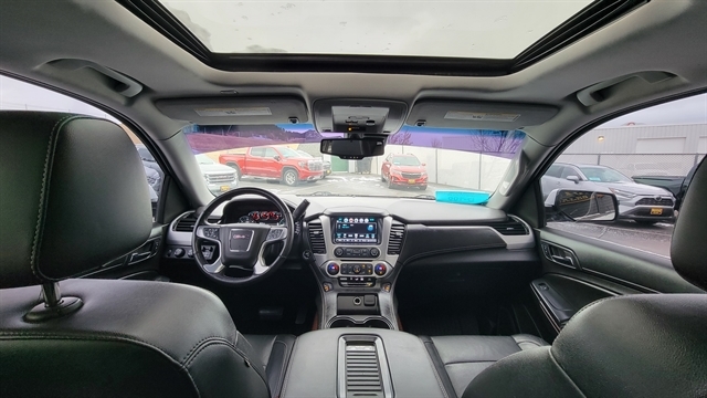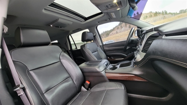 CHECK OUT THIS LOCAL TRADE, THE 2017 GMC YUKON SLT! POWERED BY THE 5.3L V8 GAS ENGINE, WITH AUTOMATIC TRANSMISSION, 4-WHEEL DRIVE, POWER LOCKS, POWER WINDOWS, POWER FOLDING SIDEVIEW MIRRORS, LEATHER INTERIOR WITH POWER SEATS, MEMORY SEATS, HEATED AND COOLED FRONT SEATS, SATELLITE RADIO, CD PLAYER, AUXILARY PHONE PORTS, BLUETOOTH CONNECTION, BOSE PREMIUM AUDIO, CRUISE CONTROL WITH FORWARD COLLISION, LANE KEEPING, BLINDSPOT AWARENESS, FRONT AND REAR CLIMATE CONTROL, POWER LIFT GATE, POWER SUNROOF, HEATED STEERING WHEELS, UPGRADED BLACKED OUT RIMS, ALL-WEATHER MATS, FIXED RUNNING BOARDS, POWER FOLDING 2ND AND 3RD ROW SEATING, TOW PACKAGE WITH TRAILERING BRAKE, BACKUP CAMERA, REVERSE SENSORS, ONSTAR SERVICES, REAR ENTERTAINENT SYSTEM, NAVIGATION, REMOTE START AND MUCH MORE! CALL(605)642-1900 TODAY OR STOP IN FOR A TEST DRIVE!